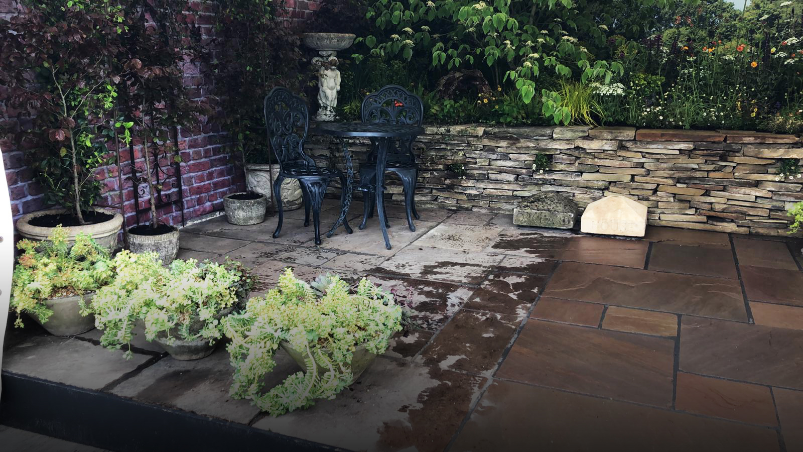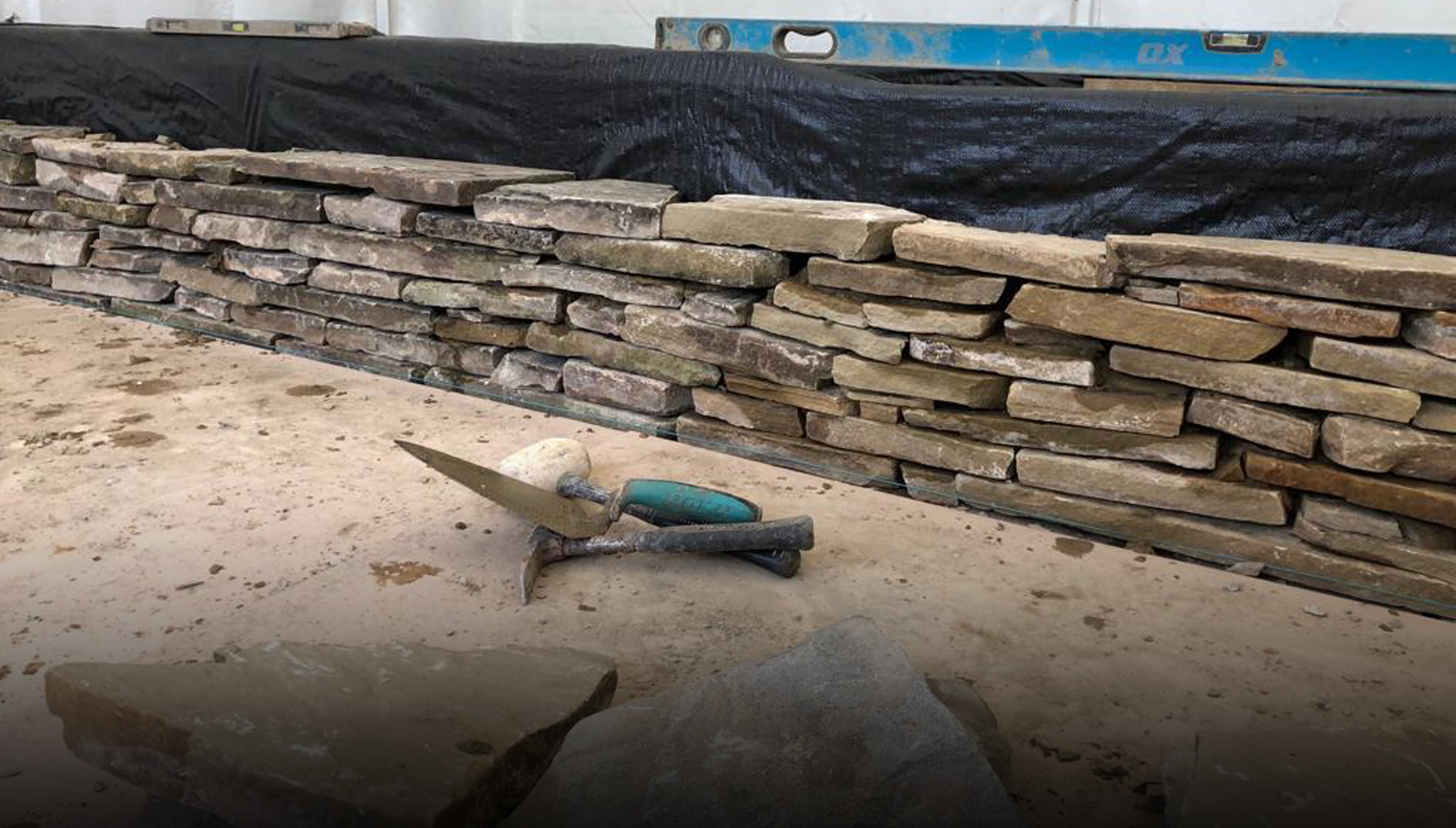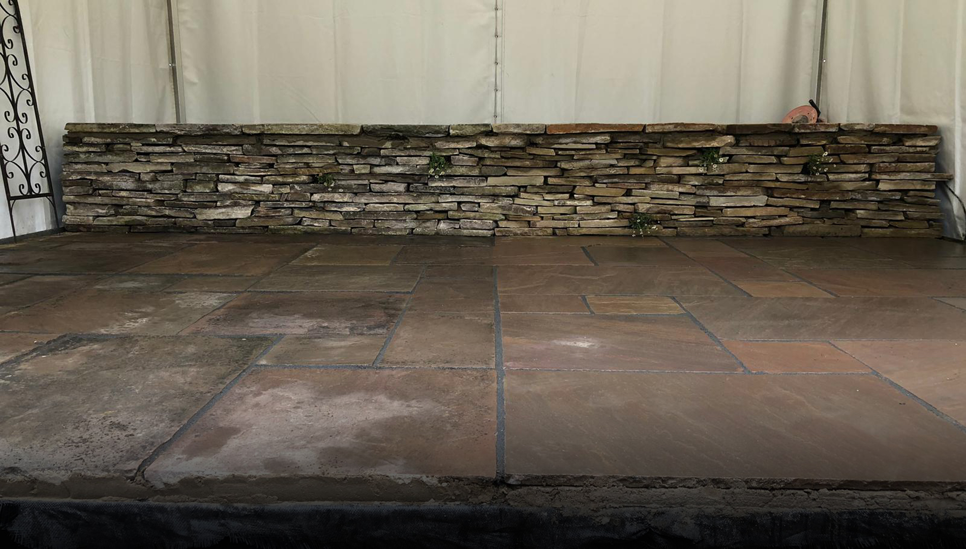 Months of preparation went into weathering the stones and slabs before we cleaned 50% of them to demonstrate the effect of The Patio Black Spot Removal Company's biodegradable and pet-friendly black lichen remover.