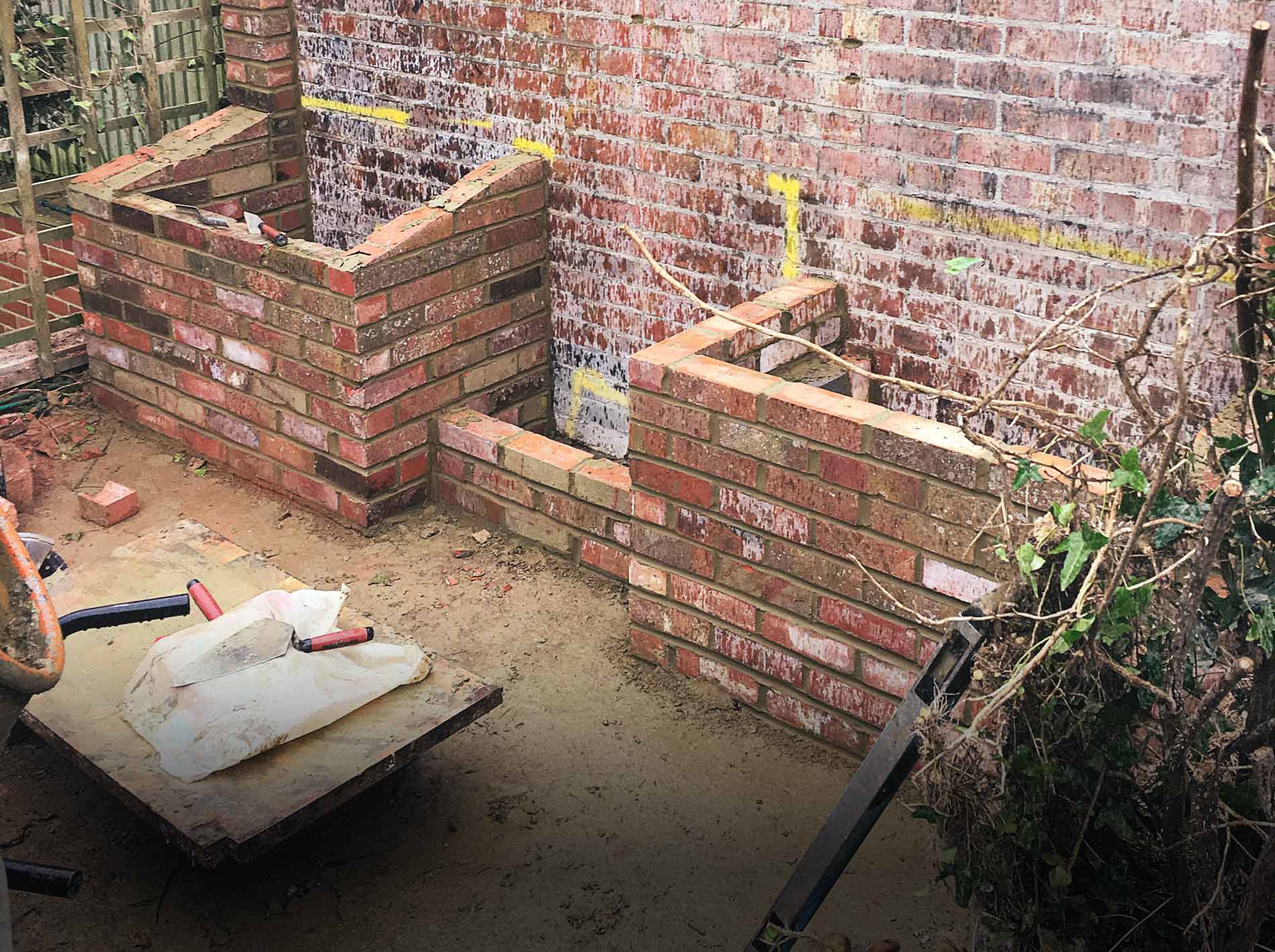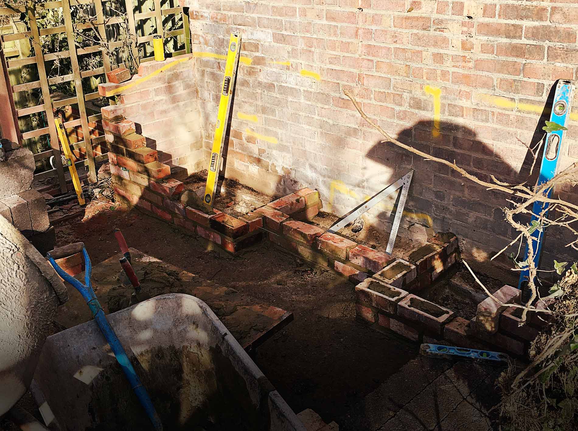 Rather than working from plans, Neil had a vision of how the garden would look and we designed it as we went along, making the best use of a mixture of old bricks in different sizes, both imperial and metric.