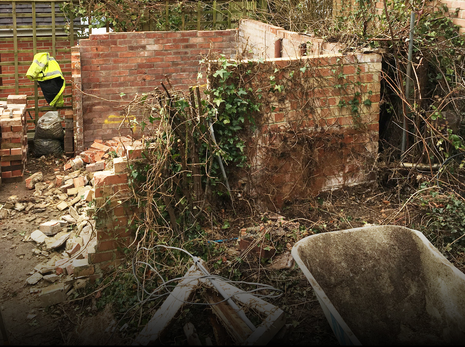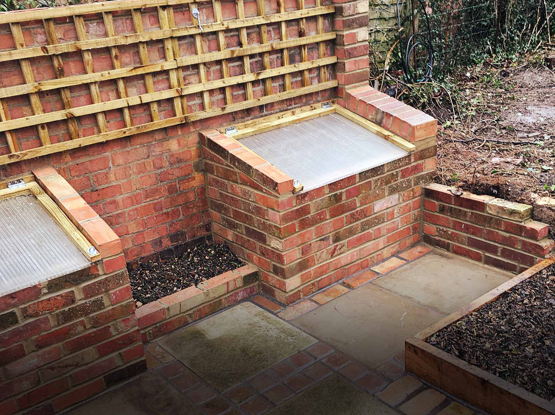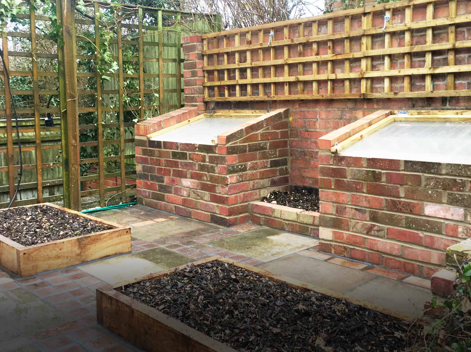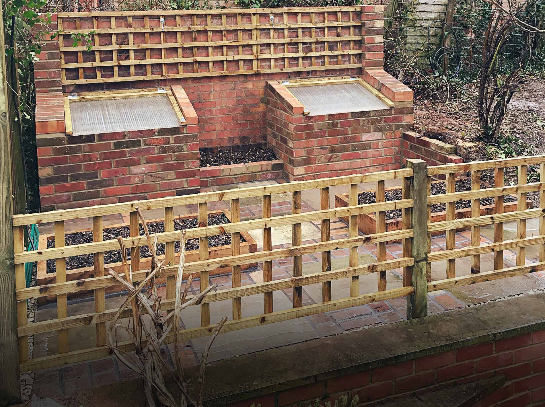 We transformed a ramshackle brick garden shed in Goring into a fruit and vegetable patch, reclaiming about 90% of the old materials.