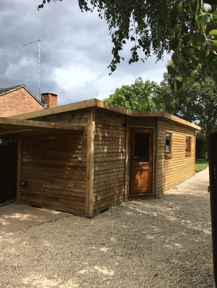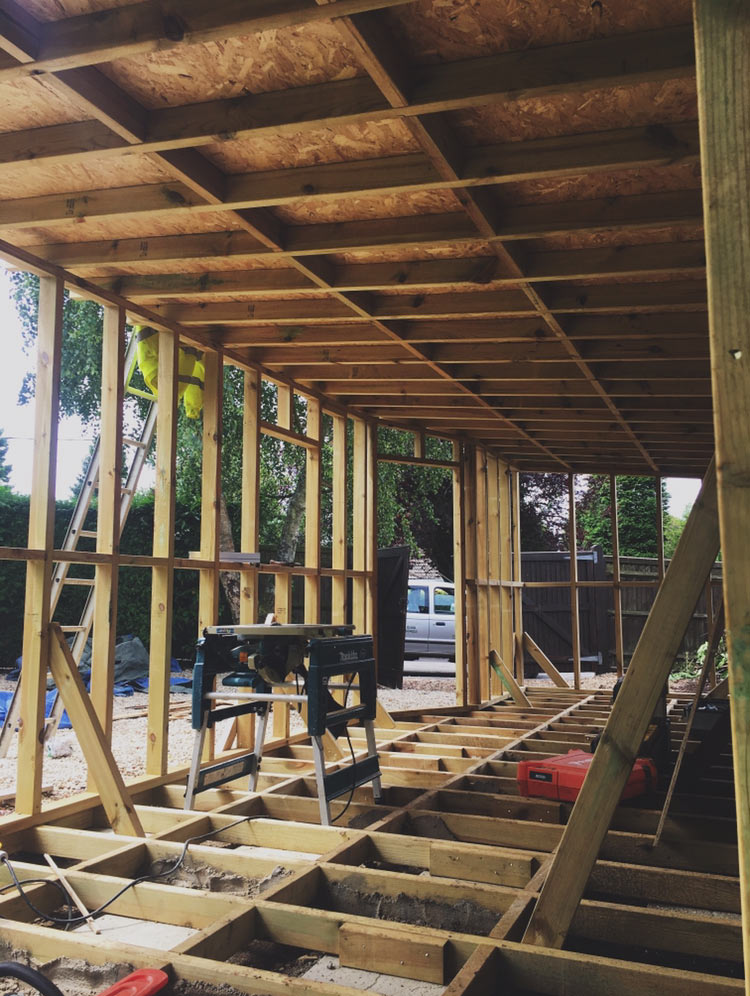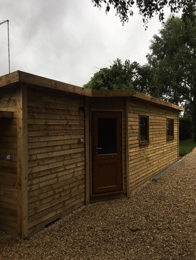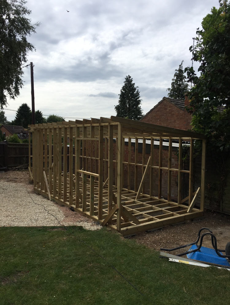 The roof was made from simple oriented strand board (OSB) and covered with a mineral felt top sheet to give the maximum strength for the most affordable price.