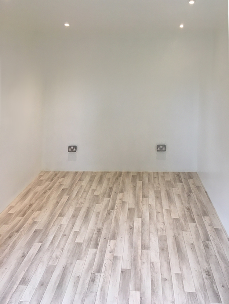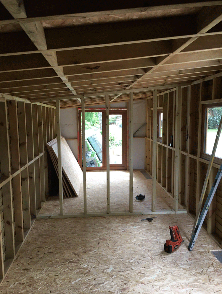 For the workshop area the emphasis was on practicality rather than looks, so we left the exposed studwork and a built a walk-in storage area where the home owner has added his own shelving units. The workshop has a separate entrance so that dust and dirt doesn't get into the gymnasium room and a window to give plenty of natural light to work by.