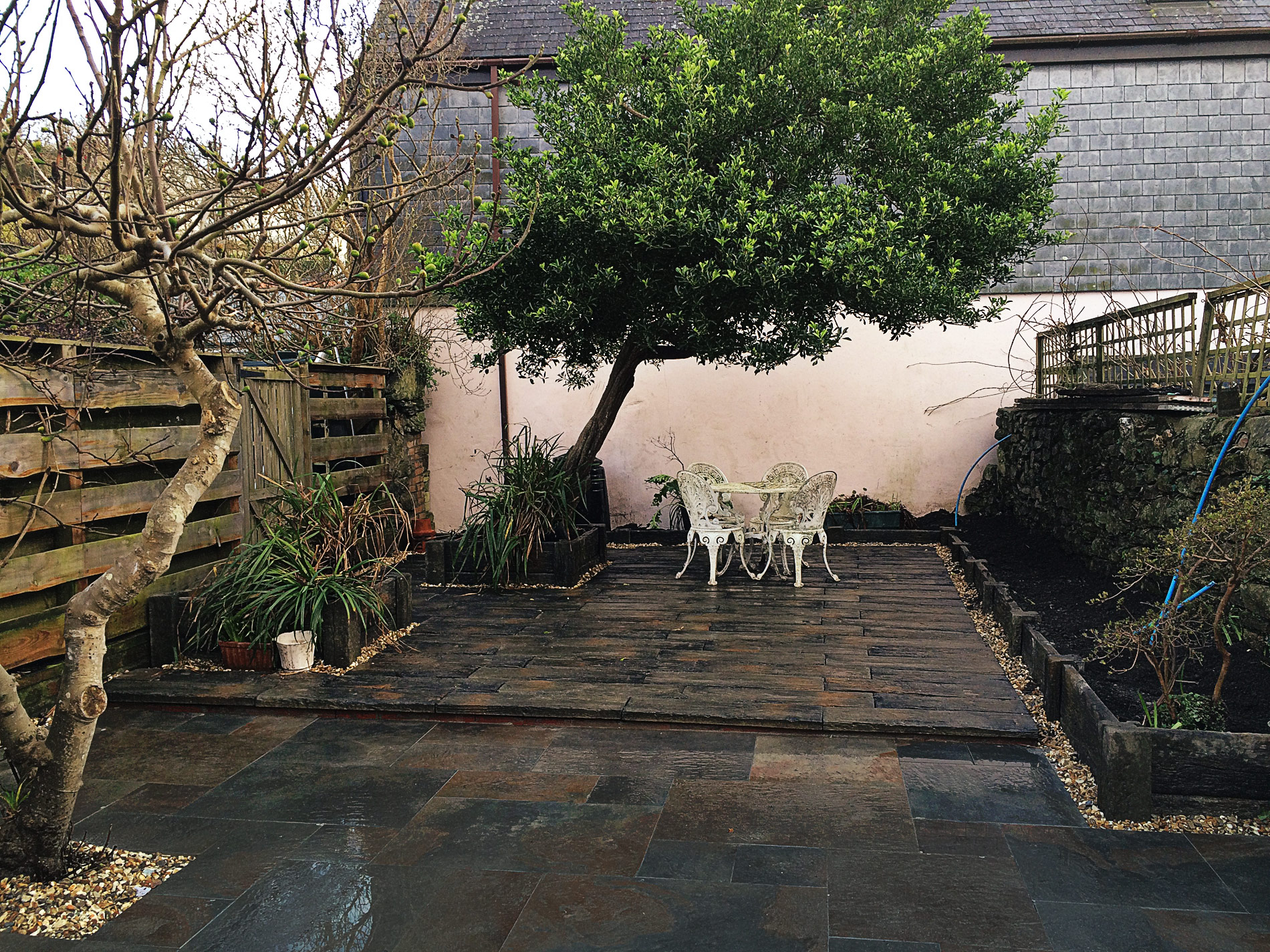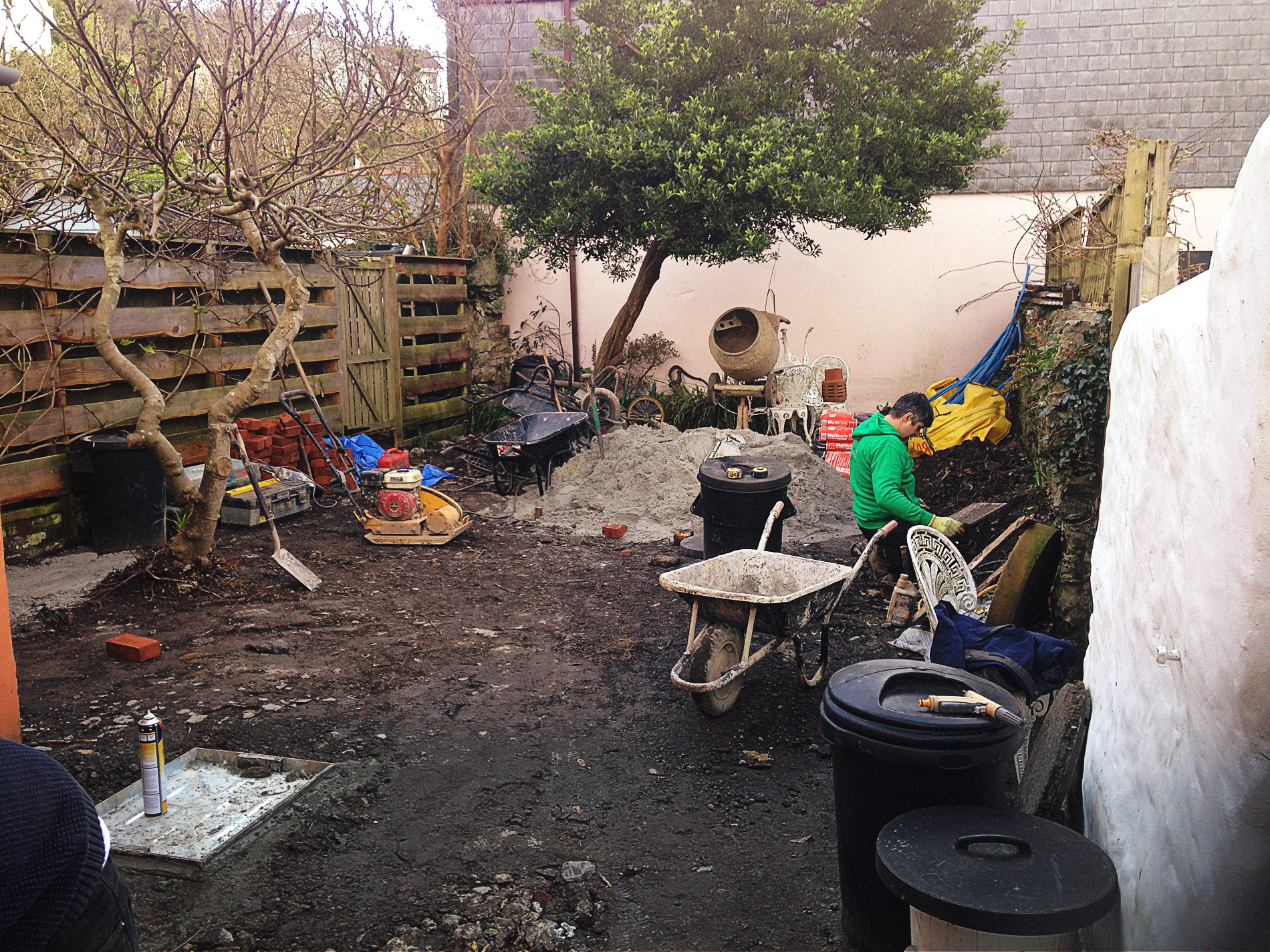 We had to move 18 tonnes of hardcore and waste and we used 12 tonnes of sand and 2 tonnes of cement to complete the two week landscaping job to turn this untidy yard into a maintenance-free outdoor living space.