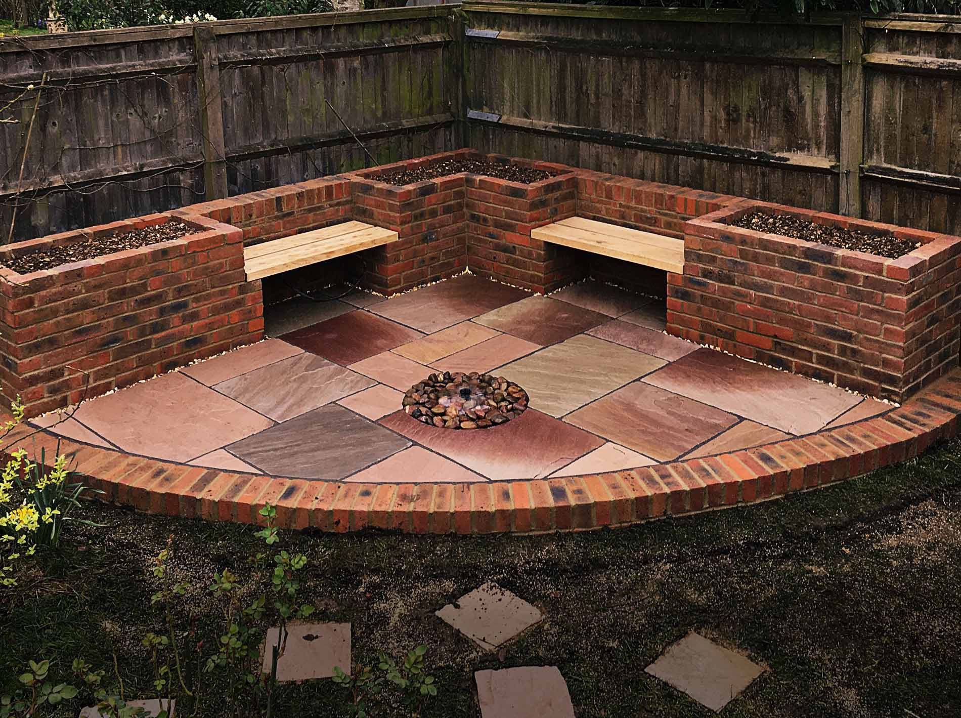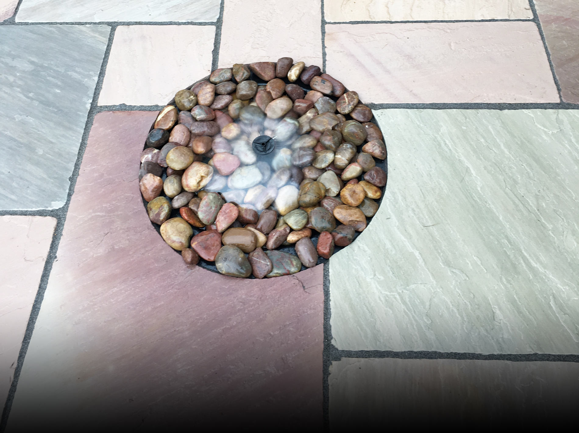 A fun addition was the central water feature, a circular fountain, complete with large pebbles, which recirculates water from a sump in the ground.
